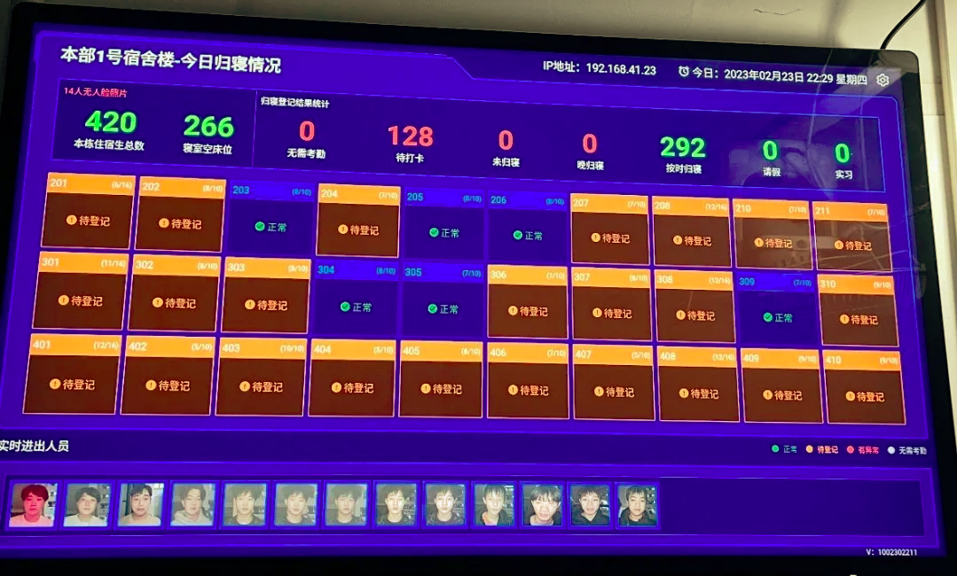 為進一步加強宿舍監(jiān)管,規(guī)范歸寢管理,保障學生安全,提高工作效率,廣西城市建設學校攜手成都依能科技股份有限公司,于2022年12月啟動了基于AI新技術的宿舍無感考勤系統(tǒng)的建設。目前,學校110臺智能測溫考勤面板機和15臺顯示終端機正式啟用,應用效果良好。